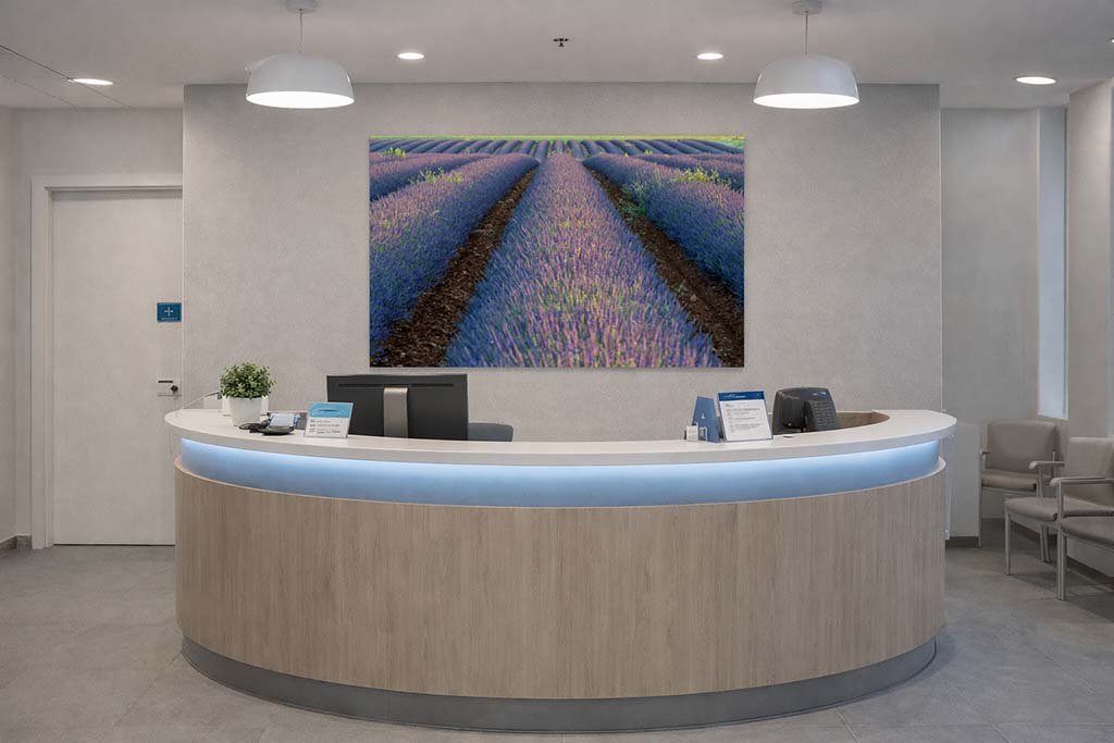 Besonders im Empfang einer Arztpraxis entfaltet das Motiv „Endloslavendel“ eine zutiefst vertrauensvolle Wirkung. Die visuelle Struktur wirkt ordnend und beruhigend auf Patienten und Besucher. Die hochwertige Umsetzung auf Acrylglas oder Leinwand verstärkt die Farbbrillanz und die plastische Tiefe des Feldes. Auf Alu-Dibond wirkt das Motiv modern und edel mit einer reflexionsfreien Oberfläche. Ein exklusives Werk für Liebhaber von Klarheit und natürlicher Ästhetik.