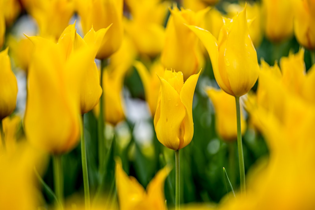 Dieses Wandbild ist eine Hommage an die Klarheit und Kraft der Natur. Die Fotografie zeigt eine Gruppe gelber Tulpen, wobei eine zentrale Blüte durch präzise Schärfesetzung besonders hervorgehoben wird. Das Spiel mit der Schärfentiefe lässt die übrigen Blumen sanft im Hintergrund verschwimmen, was dem Bild eine angenehme Ruhe und Tiefe verleiht. Die warme Farbigkeit wirkt wie ein natürlicher Stimmungsaufheller für jeden Raum.