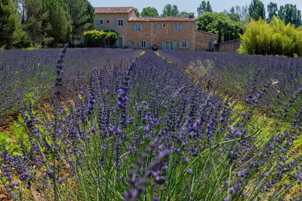 Diese Fotografie ist eine Hommage an das Savoir-vivre. Im Zentrum steht ein prachtvoller, alter Gutshof, dessen helle Fassade und rustikale Details die Geschichte der Region erzählen. Die tiefvioletten Reihen des Lavendels führen das Auge direkt zur Architektur und schaffen eine beeindruckende räumliche Tiefe. Die Lichtstimmung fängt die Wärme eines Sommertages in der Provence perfekt ein.