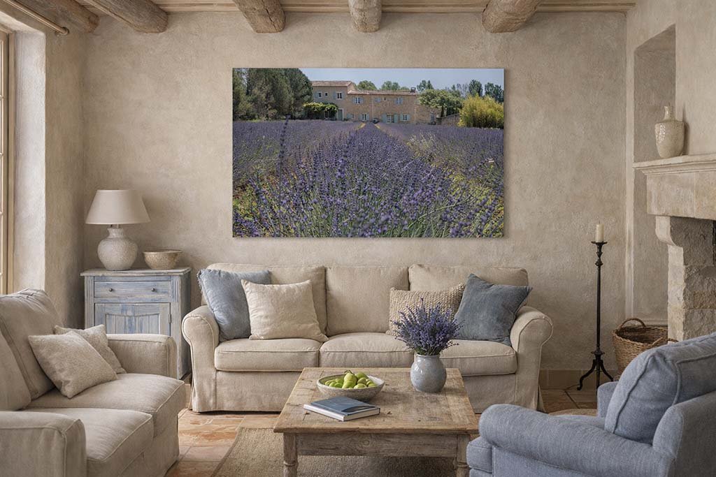 Besonders in einem provenzalischen Landhaus oder in Räumen mit natürlichen Materialien wie Holz und Stein entfaltet „Gutshof“ seine volle Wirkung. Die hochwertige Umsetzung auf Leinwand unterstreicht den malerischen Charakter der Aufnahme, während Acrylglas die Leuchtkraft der Farben intensiviert. Auf Alu-Dibond wirkt das Motiv besonders authentisch und zeitlos.