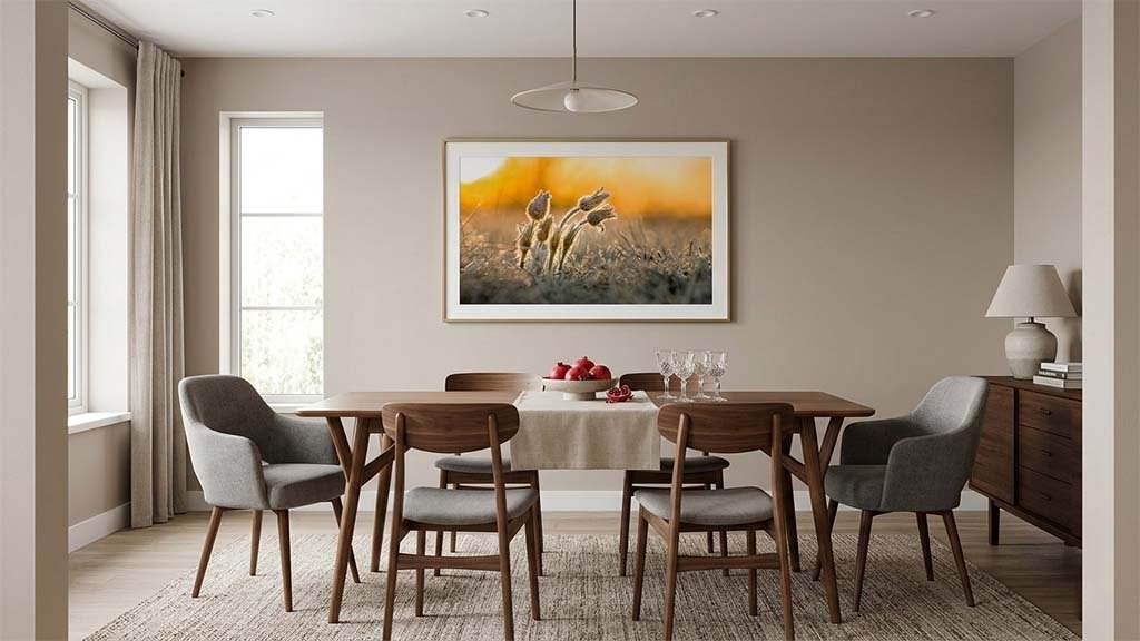 Im Esszimmer schafft dieses Panorama eine exklusive und inspirierende Umgebung. Das warme Leuchten im Hintergrund wirkt harmonisierend und lädt zum Verweilen ein. Auf Acrylglas kommen die feinen Lichtpunkte im Bokeh und die Brillanz des Gegenlichts besonders spektakulär zur Geltung. Die Umsetzung auf Alu-Dibond unterstreicht die künstlerische Tiefe des Motivs durch eine matte, reflexionsarme Oberfläche. Ein Muss für Kenner hochwertiger Naturfotografie und Sammler besonderer Editionen.