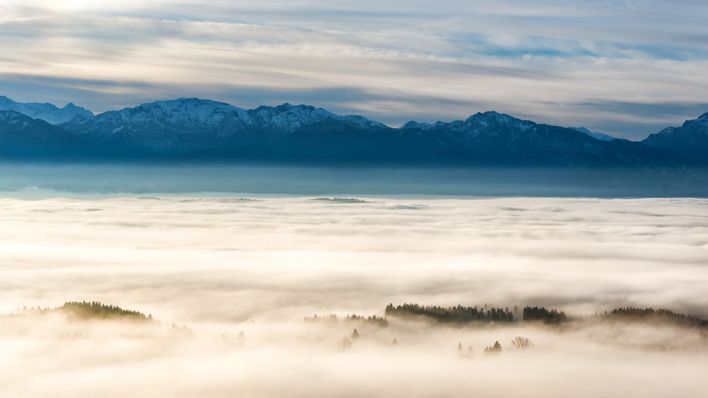 Wandbild „Nebelmeer vom Auerberg“ – Die Erhabenheit der Alpen