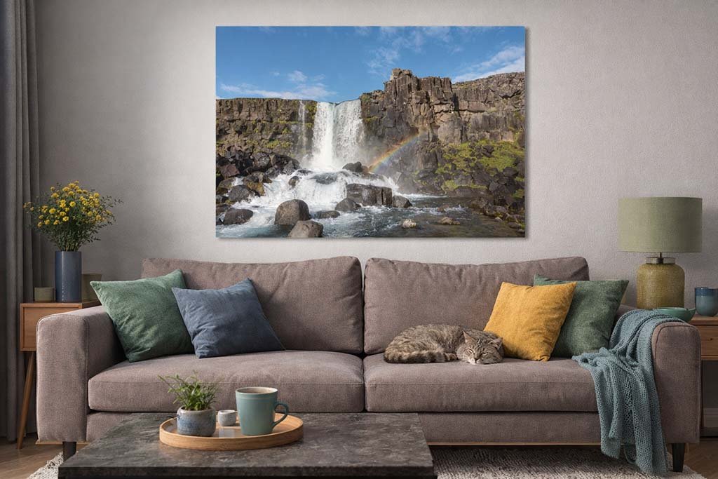 Wandbild „Öxarárfoss im Regenbogen“ – Ein Lichtblick der Natur