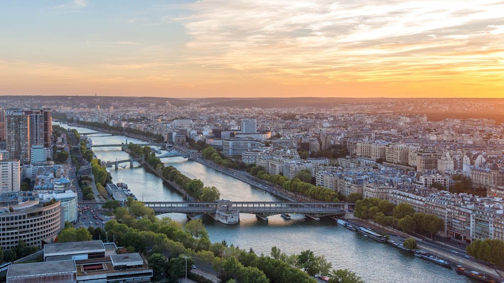 • Motiv: Blick über die Seine in Paris bei Sonnenuntergang.