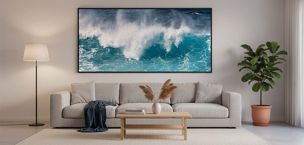 Diese lebendige Energie macht das Wandbild „Türkise Gischt“ zur idealen Wahl für Räume, die eine erfrischende und moderne Atmosphäre erhalten sollen. Besonders im Wohnzimmer über der Couch oder in einem großzügigen Flur wirkt das Panorama wie ein Fenster zum offenen Atlantik. Ein exklusives Stück Fotokunst für alle, die das Meer in seiner kraftvollsten Form lieben und die Dynamik der Natur täglich neu erleben möchten.