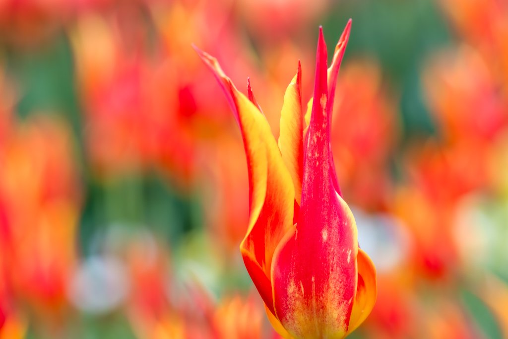 Motiv: Rot-gelbe Tulpe in dynamischer Makroaufnahme.
