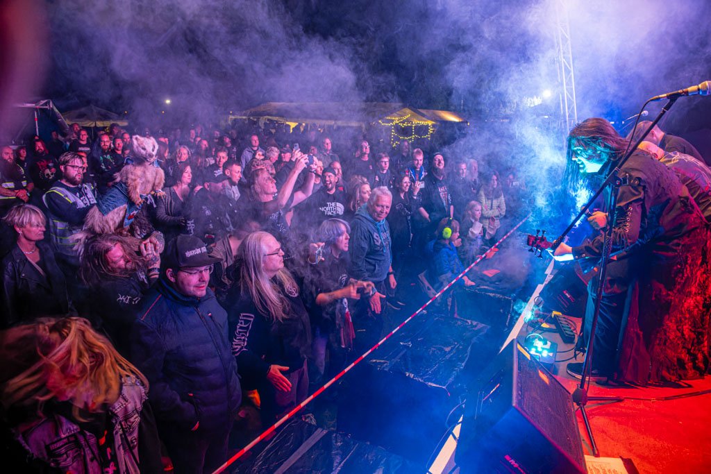 Dieses Werk dokumentiert einen intensiven Moment während des Auftritts der Band Tungsten. Die Perspektive von der Seite der Bühne fängt sowohl die volle Konzentration der Musiker als auch die Gesichter der Fans in den ersten Reihen ein. Der Kontrast zwischen dem kühlen, blauen Scheinwerferlicht und der nächtlichen Festival-Umgebung erzeugt eine packende Dynamik, die den Betrachter mitten ins Geschehen versetzt.