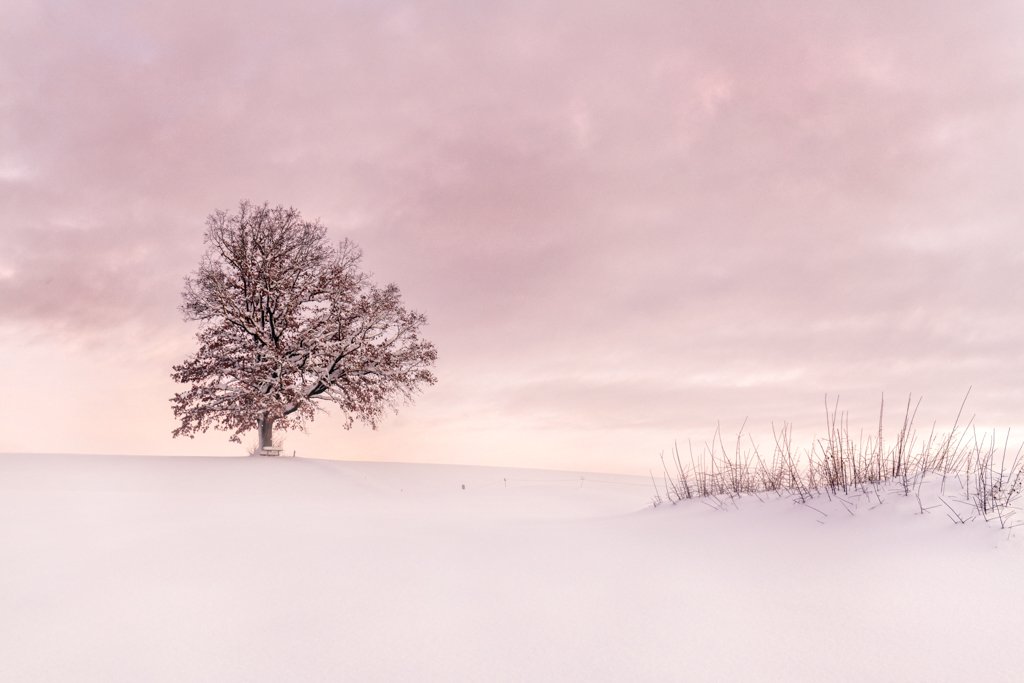 • Motiv: Einzelner Baum in einer minimalistischen Winterlandschaft.