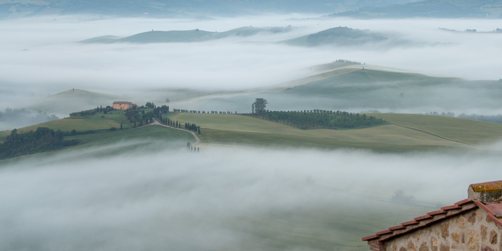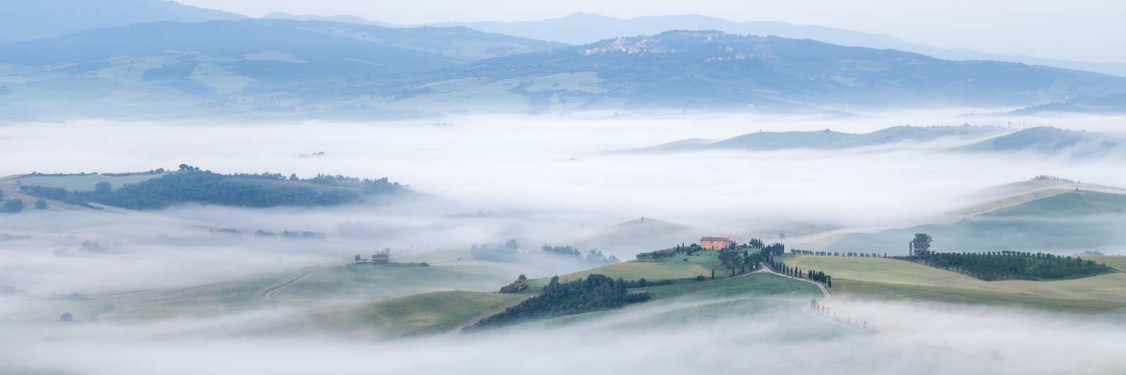 Fine Art Fotografie aus Pienza und San Quirico d’Orcia – entstanden an einem außergewöhnlichen Nebelmorgen im Mai 2018.