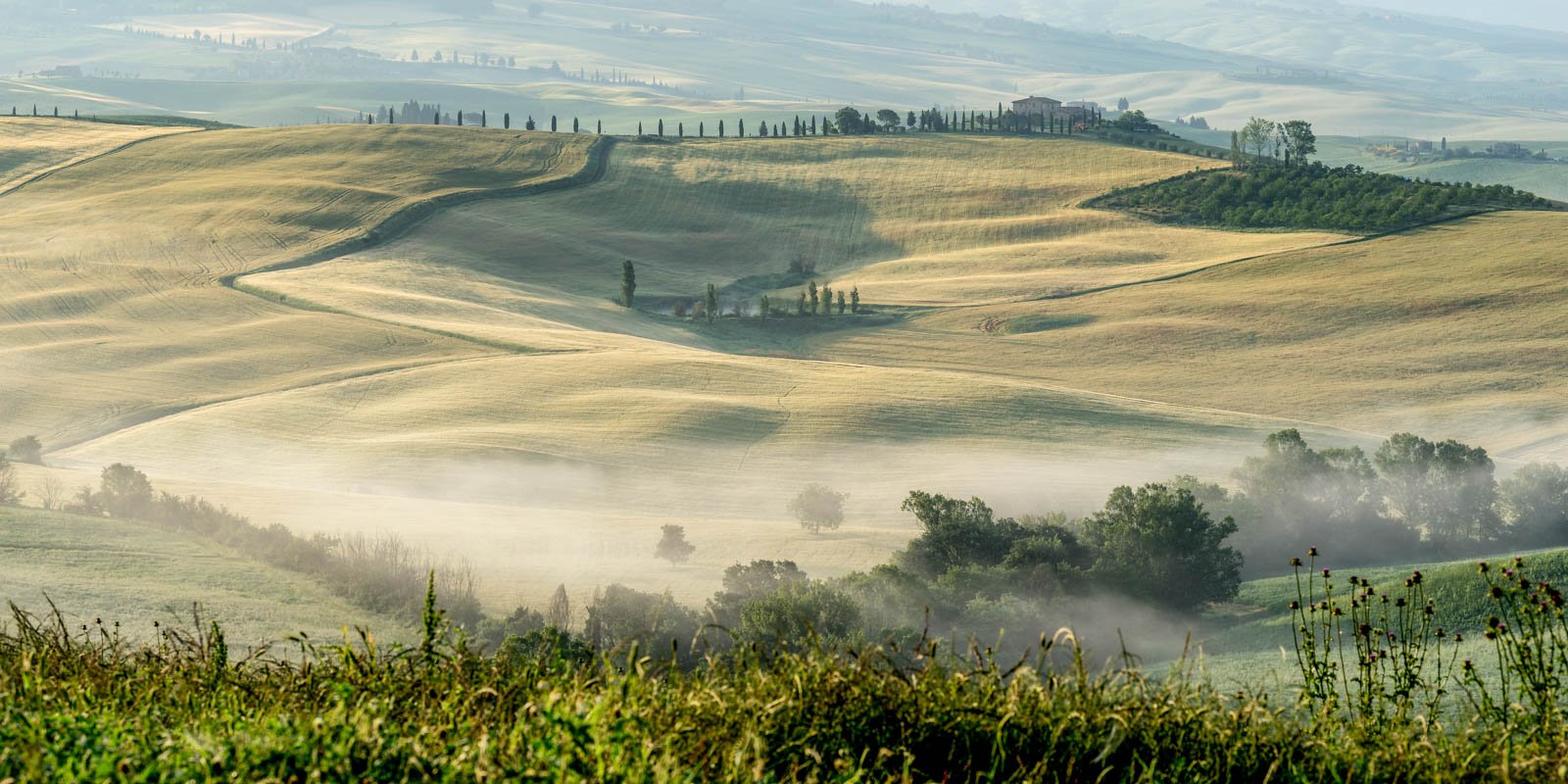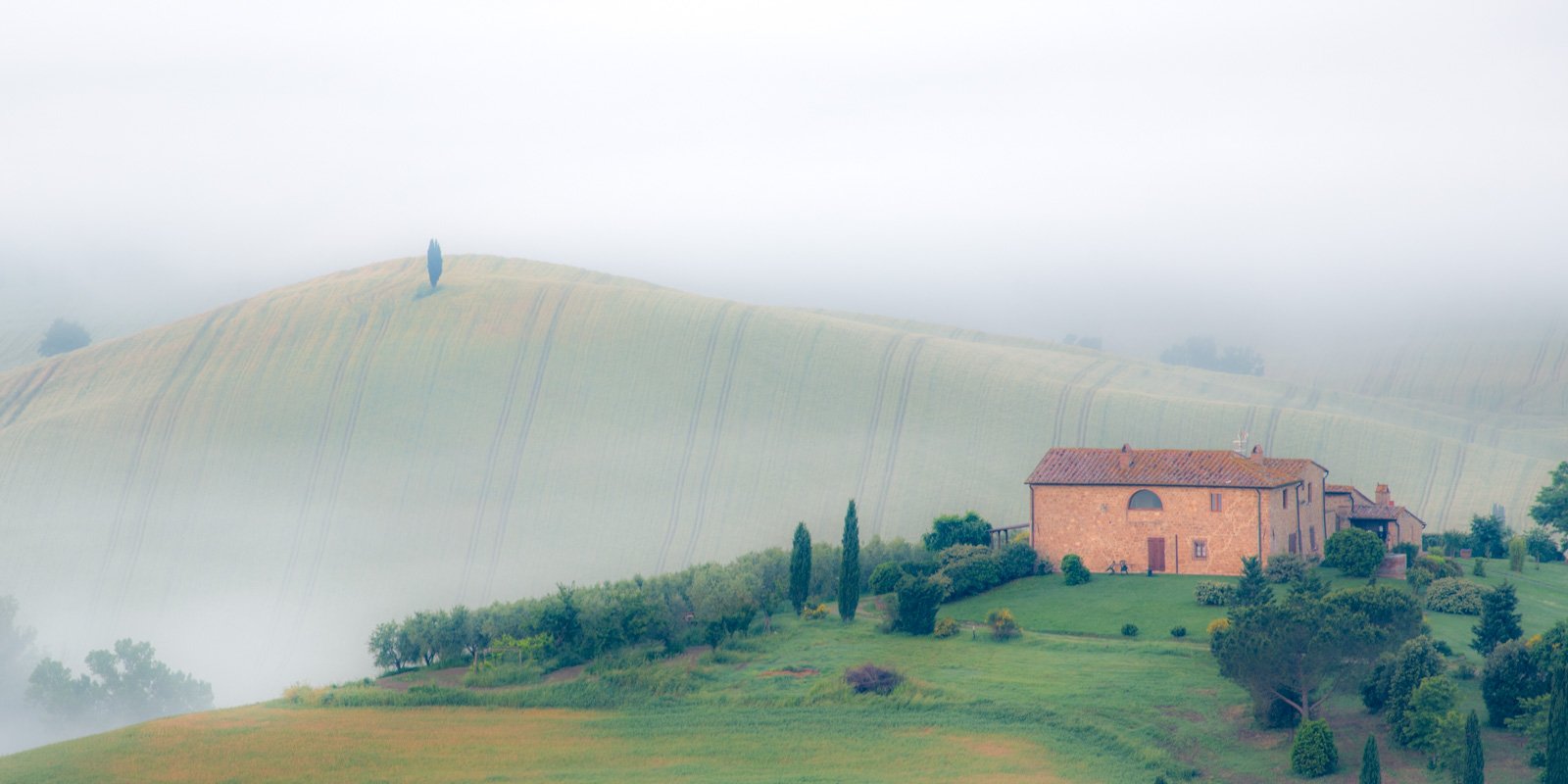 Die Toskana zählt zu den bekanntesten Regionen Europas für Landschaftsfotografie. Die sanften Hügel rund um Pienza und San Quirico d’Orcia, einzeln stehende Zypressen und weitläufige Agriturismi prägen das Bild dieser Kulturlandschaft. Doch nur selten zeigt sich diese Szenerie in dichtem Morgennebel – einer Stimmung, die Formen reduziert, Kontraste weicher erscheinen lässt und der Landschaft eine beinahe malerische Tiefe verleiht.