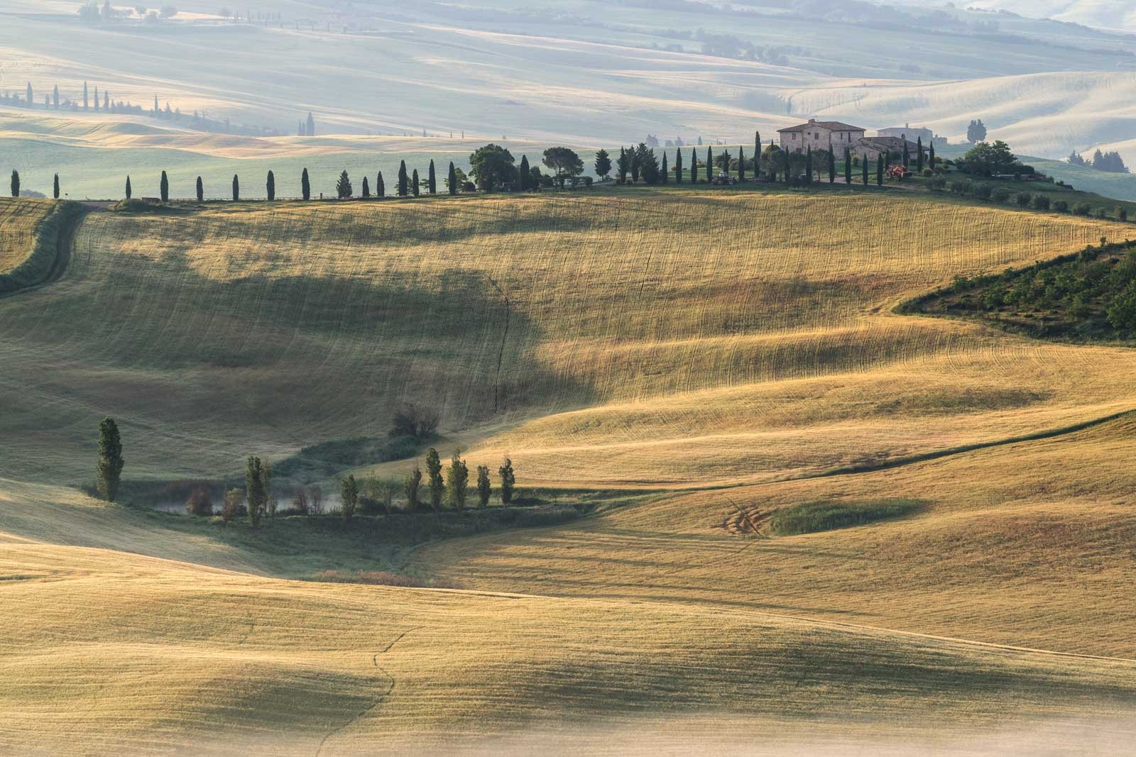 Jetzt sollte man meinen, dass für die Landschaftsfotografie vornehmlich weitwinklige Objektive benötigt werden. In diesem Fall kamen aber auch Telebrennweiten bis 500 mm zum Einsatz. Die ganze Geschichte und vor allem die dazu gehöredenen Randbedingungen und warum die Toskana prädestiniert für Superteles ist, können Sie sind hier im Blog erfahren.